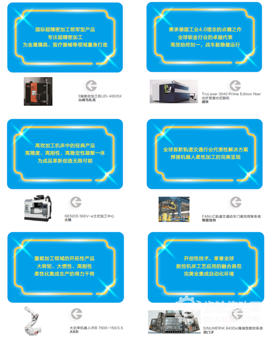 匯聚了世界知名品牌,機床行業前20強,日本、德國、美國、瑞士、瑞典、韓國等15個國家和地區的1000+參展商:西門子、發那科、山崎馬扎克、赫克、哈斯、哈挺、大隈、威亞、西鐵城、津上、三菱、沙迪克、慶鴻、三光、安德、普銳米勒、友嘉、精雕、紐威、海德曼、麗馳、永進、福裕、高鋒、高明、億銓、匠澤、東臺、亞崴、寶麗金、綺發、崴立、喬鋒、杭機、北一、永華、昆機、通快、大族、亞威、百超迪能、奔騰楚天、宏山、邦德、鐳鳴、海目星、金威刻、慶源、臺勵福、揚力、三環、安川、斯圖加特、廣數、翰默、上銀、瓦爾特、泰柯洛、號恩、株鉆、上量、哈量、金鷺、龍記等品牌將重裝登場。