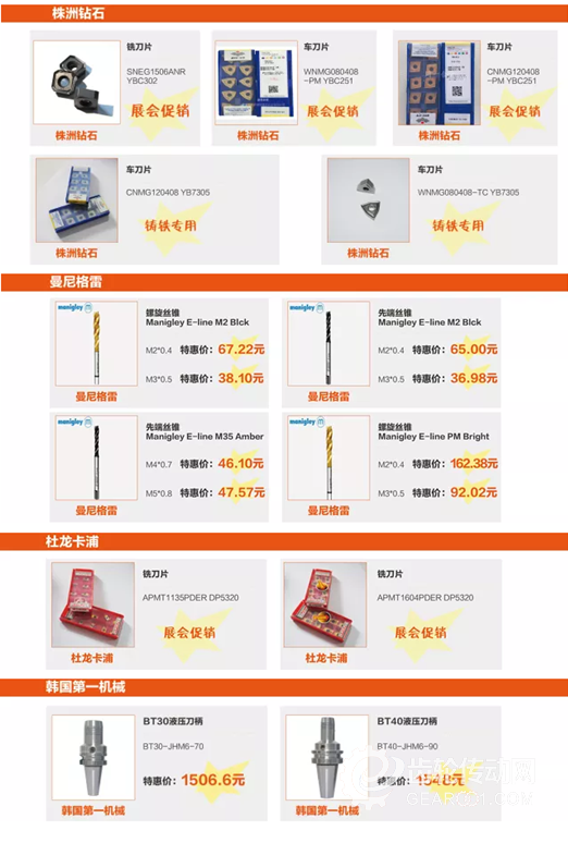株洲鉆石、曼尼格雷、杜龍卡浦、韓國第一機械等知名機床工具企業強勢登陸“母機節”,是你想不到的優惠折扣,沒有最低價只有更低價!