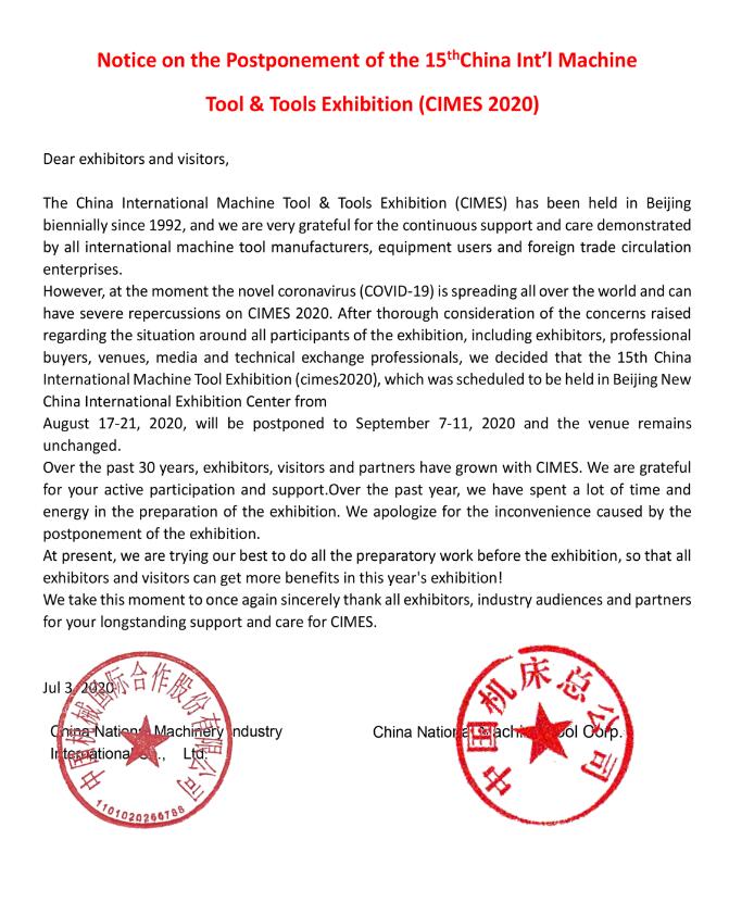 感謝您對CIMES的關注與支持,2020年9月7-11日,北京·中國國際展覽中心新館,CIMES 2020我們不見不散!