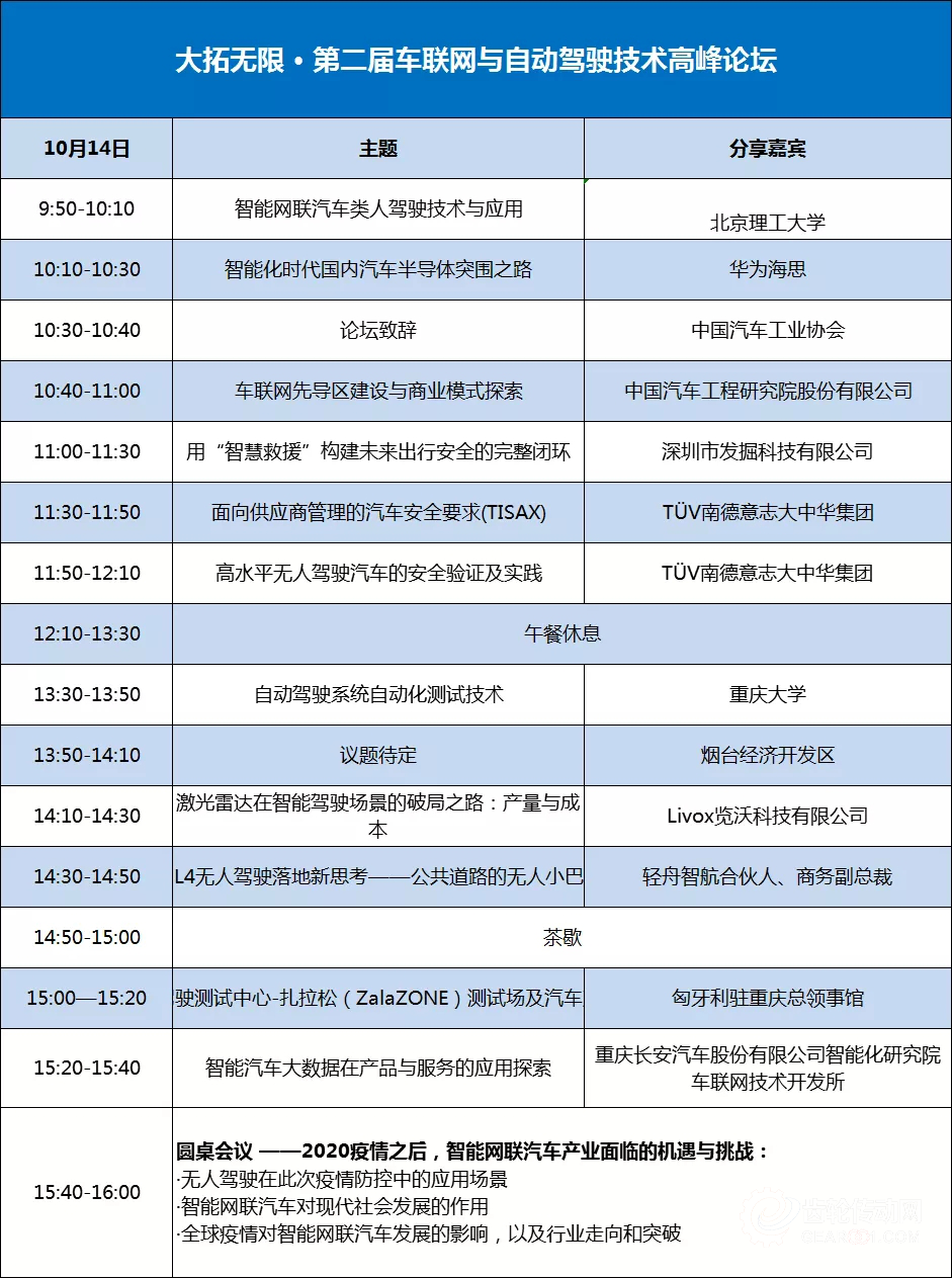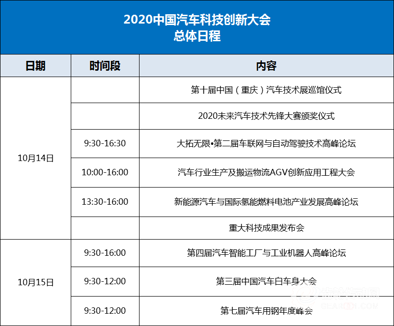 2020中國汽車科技創新大會總體日程