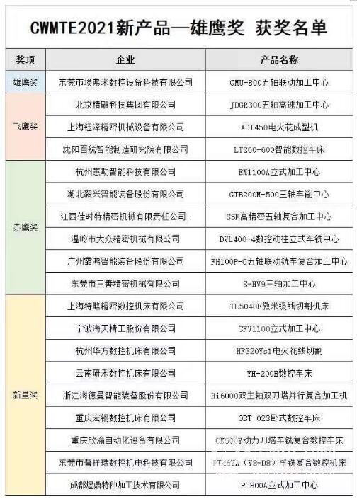 第二屆“新產品-雄鷹獎評選活動”號召雄鷹之勢,見證榮耀誕生。經過立嘉技術專家顧問團票選、行業專家票選,以及展會現場開幕首日,專家考察以及“機床屆奧林匹克大賽”現場測評評選出第22屆立嘉國際智能裝備展覽會上“雄鷹獎”、“飛鷹獎”、“赤鷹獎”、“新星獎”創新產品、技術進行宣傳表彰。最終東莞市埃弗米數控設備科技有限公司-GMU-800五軸聯動加工中心勇奪“新產品-雄鷹獎”。 注:雄鷹獎獲獎名單文末。