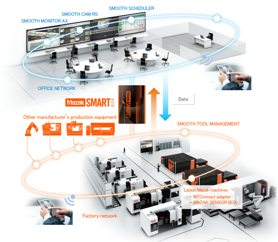 MAZAK的SPS(Smooth Process Support)智能化工廠管理系統(tǒng)將信息技術(shù)用于產(chǎn)品設(shè)計、制造以及管理等全生命周期中,使得工藝、程序、計劃等生產(chǎn)準備提前展開。作業(yè)人員只需要讀懂信息,配合機床即可完成任務,達到提高制造效率和質(zhì)量,降低制造成本,實現(xiàn)快速響應市場的目的。