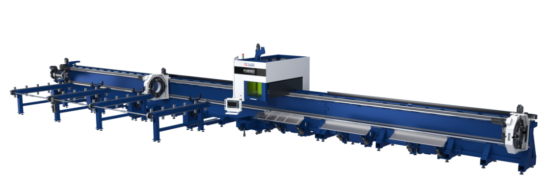 江蘇亞威機床股份有限公司YTF激光切管機。加工范圍圓管Φ50-Φ560mm,方管□50-400mm,卡盤夾持管材重量為1600kg,定位精度±0.05mm,重復定位精度±0.03mm。機床選用側掛式床身,方便搭配自動上下料結構,有利于各種管材的平行進出料;三卡盤設計,可實現(xiàn)“零”尾料加工;搭配擺動切割頭,可實現(xiàn)管材的坡口切割;自動化配套,提高整體加工效率,特別是超長管、重型管、大管徑管材的安全高效上下料。