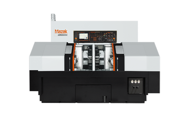 山崎馬扎克(中國(guó))有限公司展出的DT200 L雙主軸雙刀塔車削中心,采用左右對(duì)稱結(jié)構(gòu),配備雙主軸、雙刀塔和15kW高性能內(nèi)置電主軸。配備非升降式12工位轉(zhuǎn)塔刀架,換刀速度可達(dá)1.4s。最大回轉(zhuǎn)直徑Φ320mm,最大加工直徑Φ320mm,最大加工長(zhǎng)度150mm,主軸通孔直徑Φ76mm。機(jī)床左右配置獨(dú)立主軸和刀塔,可實(shí)現(xiàn)工件自動(dòng)對(duì)接,完成兩道工序的加工。