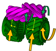 擁有固定扭矩分配比的圓柱螺旋齒輪機構決定扭矩的分配率,齒輪機構發生扭矩鎖緊時自動分配左右動力輸出.比如一個扭矩分配比為2.5:1的差速器能夠將扭矩放大2.5倍傳遞給驅動橋上抓地力更大的那個驅動輪。但其缺點在于,若某一驅動輪突然失去牽引力,另一個車輪也將徹底失去牽引力。