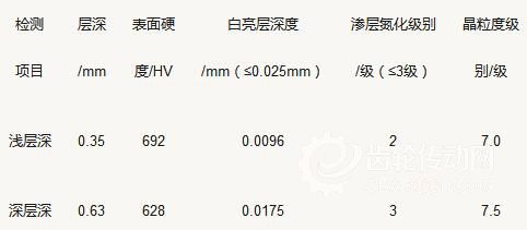 滲氮后相關指標及試樣1/2齒高處檢測結果如下: