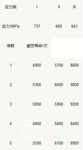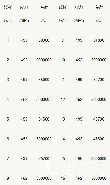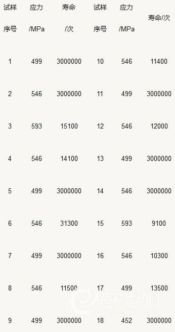 淺層滲氮齒輪在短壽命區的成組法測試數據如表3所示。