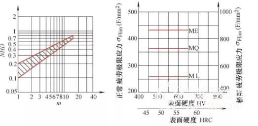 圖5 國際標準ISO6336-5中滲氮層深及彎曲疲勞極限數據