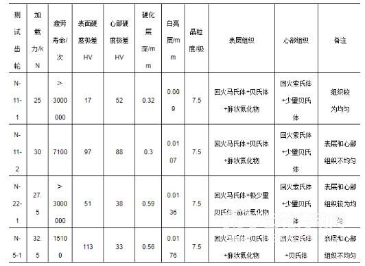 由上述檢測結果可看出,通過測試的齒硬度、組織較為均勻,未通過測試的齒表層和心部硬度、組織不均勻,較高的表面硬度、心部硬度,較好的硬度、組織均勻性有利于疲勞壽命提高。