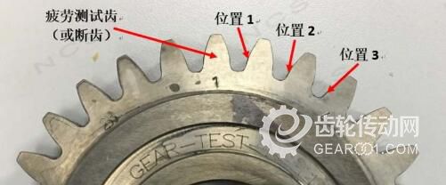 根據GB/T 14230中的相關規定,試驗齒輪隨機抽取,目的是為了提高試驗結果的可信度,并使試驗結果能夠反映該種齒輪的承載能力。按照GB/T 14230中B試驗法,采用了齒輪彎曲試驗設備對輪齒進行單齒脈動加載試驗,加載至輪齒出現裂紋或失效后停止試驗,得出在此應力下的循環應力次數即壽命數據。為了充分利用有限的試件,應安排盡可能多的試驗齒對,同時保證同一應力水平的被試齒來自各個齒輪,但所選取的輪齒與進行過試驗的輪齒(包括用以支承的輪齒)間隔不少于一個齒。