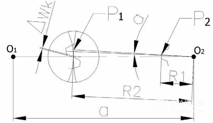 19 0 B X - 1 2 1 為例:R 2 = 3 0 , R 1 = 7 . 2 5 , 則P1=1/4*ΔWk=0.015mm,行星齒輪內花鍵齒和外齒相位偏角α: