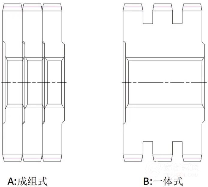 采用整體一體式的,加工完成以后,再分割加工,最后做標記。采用單片成組式的,加工完成后,做標記區分,二種方式可解決各組齒輪內外齒相位一致的問題。