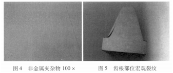 (3)針對磨齒時砂輪轉速偏高的排查,通過查閱生產車間的工藝記錄,磨削加工時砂輪轉速為 1800m/min,將砂輪轉速降為1200m/min后,沒有出現肉眼可見的裂紋;不能排除磨齒時砂輪轉速偏高B9。