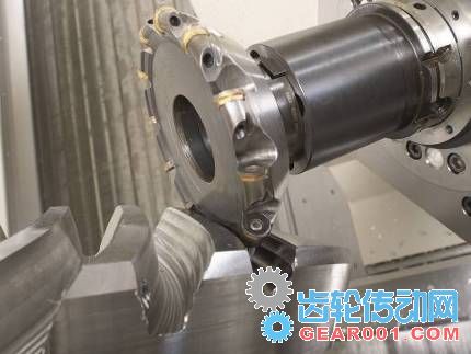 在使用可轉位圓刀片打開齒槽后,再采用新型銑削刀具概念加工齒側面。刀具類型可分類為中間工序加工用刀空心銑刀和鐘形銑削刀具。銑刀軸的安裝角可調,并且銑削刀具輪廓呈細長狀,這樣就能加工出各種牙側角和模數。凸凹兩種齒側面可以采用同一把兩側安裝有刀片的刀具加工而成。如果刀具僅一側配有刀片,以便增加有效刀片數(并由此提高進給率),則可節省相當多的時間。 所需的更多換刀只會增加少量的時間。