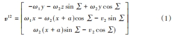 本文設(shè)蝸桿的移動(dòng)速度 v1=0,齒輪的移動(dòng)速度 v2≠ 0,在蝸桿和斜齒輪雙自由度嚙合過程中,嚙合點(diǎn)在坐標(biāo)系S中的相對(duì)運(yùn)動(dòng)速度為: