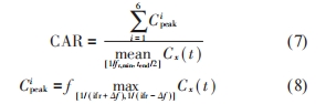 (5)構建故障演化特征量——倒頻譜幅值比(Cepstral Amplitude Ratio,CAR),定義為倒頻譜中各階故障特征倒頻對應幅值的均值與高倒頻率幅值均值之比,表達式如下: