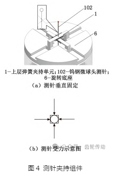 2、小模數齒輪接觸式鎢鋼測針微球頭夾具整體設計