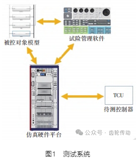 測試系統(tǒng)主要包括待測的 TCU、仿真硬件平臺、已校準(zhǔn)的被控對象模型和試驗(yàn)管理軟件,如圖1 所示。