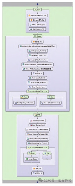 a. Start 部分:新增第 2 行 CANape 調(diào)用 .clib,作用為調(diào)用 CANape 工具 ,新增第 3 行開始記錄 CANape數(shù)據(jù)操作,用于調(diào)用TCU內(nèi)部狀態(tài)量。