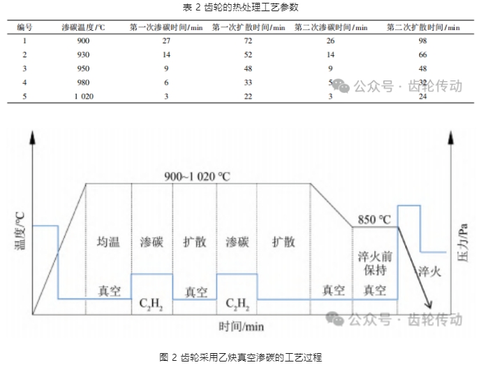 試驗用滲碳設備為江蘇石川島豐東真空技術有限公司開發的 VCB-243048 真空滲碳爐生產線,淬火油為日本 nippon-grease 特殊淬火油 V-1900S,清洗設備為 HWBV 超聲波真空清洗機,回火設備為 NVPT 真空回火爐。