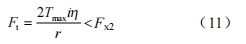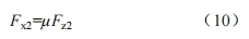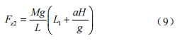將計(jì)算出的整車最大加速度 a=12.1 m/s2,代入式(9)計(jì)算地面對(duì)兩后輪的支撐力 Fz2: