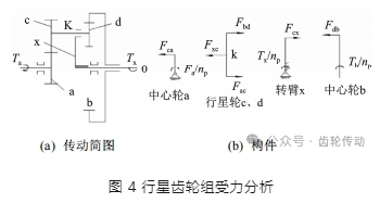 2)齒輪組的受力計(jì)算。齒輪組的受力分析如圖 4 所示。