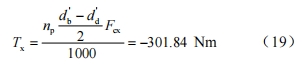 計(jì)算齒輪組受力所需的參數(shù),當(dāng) Ta=Tmax= 21 Nm,行星輪個(gè)數(shù) Np=3 時(shí),齒輪 a-d 的分度圓直徑依次為 14.4、47.2、20、81.6 mm。行星輪 K 由 c(大行星輪)與 d(小行星輪)同軸構(gòu)成一體,中心輪 a 的切向力為