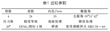 首先分析計算系統加速度、水平推力,接著預選齒輪并計算其負載扭矩、齒輪轉速、轉動慣量。預選齒輪參數為齒數=24,模數 m=4,齒寬=40mm。借助solidworks 軟件的邁迪工具進行齒輪強度校核,校核通過。齒輪相關參數如表1。