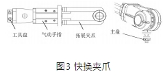 另外,機器人末端夾具使用快換裝置設計,可以針對不同的零件使用不同的拓展夾爪,實現快速換爪,大大縮短工具更換時間,提高生產效率。該裝置由兩部分組成, 分別是主盤和工具盤。主盤一般安裝在機器人手臂上, 工具盤則安裝在需要更換的夾爪上,其結構如圖3所示。