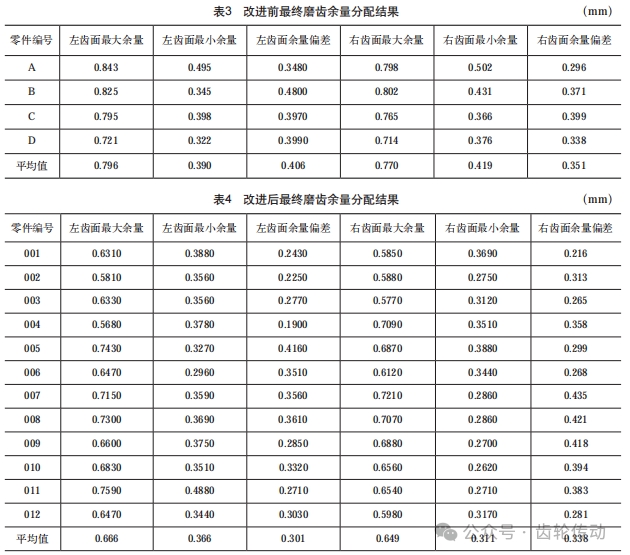 2)通過淬火裝爐方式的改善并結合分析磨齒余量數據,齒輪軸向圓跳動由0.45~0.55mm降低至 0.15~0.25mm,漲量由2.68~3.42mm降低至1.75~ 2.57mm,磨齒余量分配數據顯示齒部畸變減小約 13.46%,極大地提升了后續精車及磨齒效率,實現了高速齒輪淬火精益制造。