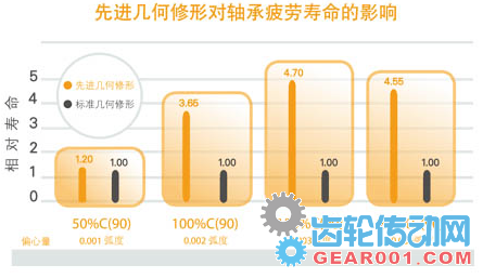 圖6不同偏心量下針對(duì)性修型對(duì)壽命的影響