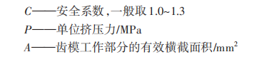 總擠壓力的計算:在鍛造過程中,模具的表面需要做潤滑處理,而潤滑所使用潤滑液的機械性能和零件的氧化層的清理,以及零件表面粗糙度也會產(chǎn)生影響,故選取壓力機的時候需要一個安全系數(shù)用來確保壓力機正常工作,這個安全系數(shù)用C來表示,得總擠壓力的計算公式為: