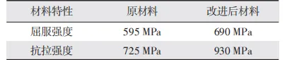 優化方案1:更改齒轂的材料,由低抗拉的材料改為高抗拉的材料,如表1所示。原材料SIRON P725的屈服強度595 MPa,抗拉強度725 MPa,改進后新材料SE4316的屈服強度690 MPa,抗拉強度930 MPa,更改后無論是屈服強度和抗拉強度都有所提高,降低了齒轂斷裂的風險。