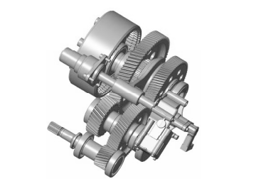 圖1為我司自主開發的新能源輕卡用輕型電驅動橋的主減傳動機構,其由平行軸兩擋AMT減速器和NGW行星齒輪減速器組成。