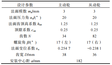 該輕型電驅橋主減兩擋減速器二級傳動低擋齒輪副采用了法面齒頂高系數han=1.25的細高齒,設計參數見表1。將表1中han改為1,即得到相較于標準齒僅變位之別的常規變位齒輪(本文簡稱常規齒)的設計參數。在Creo中分別建立細高齒齒輪副及常規齒齒輪副的三維模型。