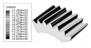 在第一個分析步incontact中,從動輪參考點上施加固定約束,主動輪參考點上施加繞軸線方向自由度上的微小角位移,消除齒側間隙,平穩地建立起接觸;