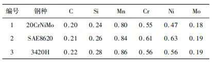 試驗(yàn)材料為Cr-Ni-Mo系齒輪鋼棒材,涉及3種試驗(yàn)鋼,其主要化學(xué)成分如表1所示。