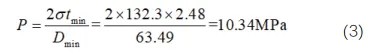 式中,tmin為膨脹套最小壁厚,單位為mm;D□為膨脹套最小外徑,單位為mm。