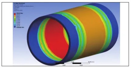 有限元計(jì)算結(jié)果表明,正常工況下膨脹套最大等效應(yīng)力為128.41MPa,有限元結(jié)果與理論計(jì)算結(jié)果的相對(duì)誤差僅為2.9%。