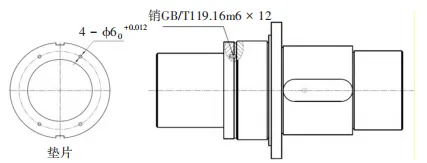 為了避免出現這種情況,在B母與墊片間加裝4個定位直銷子(滾珠絲杠副使用的是GB/T119.1 6m6×12直銷),該定位銷,尺寸公差為M6mm,直徑 ?6mm,長度12mm,其尺寸示意圖如圖5所示。