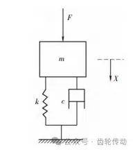 振動系統是由質量m、連接質量和地面的彈簧k、阻尼c組成,當振動系統受到外部激勵力F的時候,系統將會發生微量位移x,其振動微分方程為: