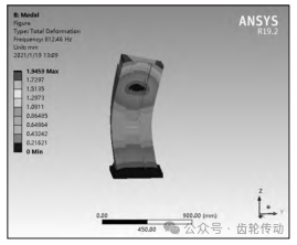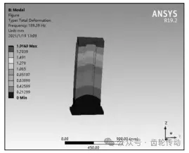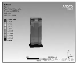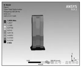 原型立柱的模態分析:機床立柱的模態分析是機床結構分析的重要組成部分之一, 機床立柱的材料屬性和約束條件同上述靜態分析結果一致,得到機床立柱前六階振型圖,如圖8所示。