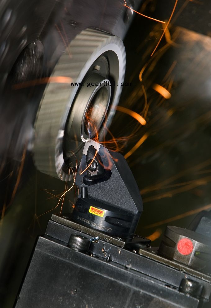 切削可以為連續(xù)或斷續(xù)切削,就如齒輪輪齒或軸特性一樣,通過選擇合適的刀片材質(zhì)可以對(duì)此類切削進(jìn)行最佳優(yōu)化。表面質(zhì)量通常可達(dá)到Rz 1或Ra 0.25 微米,尺寸公差保持在0.01 mm以內(nèi)。采用高進(jìn)給可獲得良好的表面光潔度:進(jìn)給率為0.3 mm/r時(shí),光潔度為Ra 0.3微米;進(jìn)給率為0.4 mm/r時(shí),光潔度可達(dá)Ra 0.5微米;進(jìn)給率為0.5mm/r時(shí),光潔度可達(dá)Ra 0.8微米。