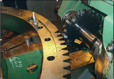 Takoma公司過去一直采用高速鋼滾齒刀切削齒輪齒。在2009年,公司購買了多臺(tái)新機(jī)床,用于生產(chǎn)船用大型齒輪零件。外徑大約為2米(6.56英尺)的回轉(zhuǎn)支承軸承由42CrMo4鋼制成,且要求更高的尺寸公差。Takoma公司最初采用專用齒輪銑刀加工回轉(zhuǎn)支承軸承的齒,但這樣做成本很高且交貨期長達(dá)12周。為了尋求更好的解決方案,公司向一家刀具供應(yīng)商做了詢問,該供應(yīng)商提供的刀具主要用在零件的其它加工中。