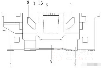 臥式加工中心是一種可實現(xiàn)多軸聯(lián)動加工的高端數(shù)控機床,廣泛用于汽車、航天 航空、軍工領(lǐng)域的各類復雜零件的機械加工,為不斷減小機床自身熱變形、提高機床加工精 度,機床制造商一直致力于降低機床各部件的溫升和溫度差異,切屑作為機床加工過程中 的最重要熱源,實現(xiàn)其快速排除機床是解決上述問題的關(guān)鍵,通過不同的底座結(jié)構(gòu),實現(xiàn)切 屑快速排除機床是最重要的方法。 現(xiàn)有的臥式加工中心底座,有 2 種結(jié)構(gòu) :