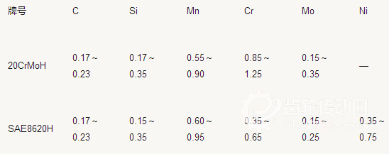表1 20CrMoH與SAE8620H主要化學成分(質量分數)要求(%)