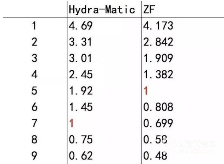 以上這張表格就是昂科威上那臺9速HYDRA-MATIC變速箱和自由光上ZF 9HP28的齒比對比。可以看到,前者的第7擋為直接擋,8、9兩擋為齒比小于1的超速擋;而后者的第5擋即為直接擋,6-9擋的四個擋位都被設定成了超速擋。