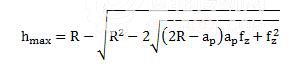 刀具圓弧底刃的半徑與其最大切削厚度的關系式為: