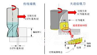 圖 1大進給刀具與傳統(tǒng)立銑刀對比