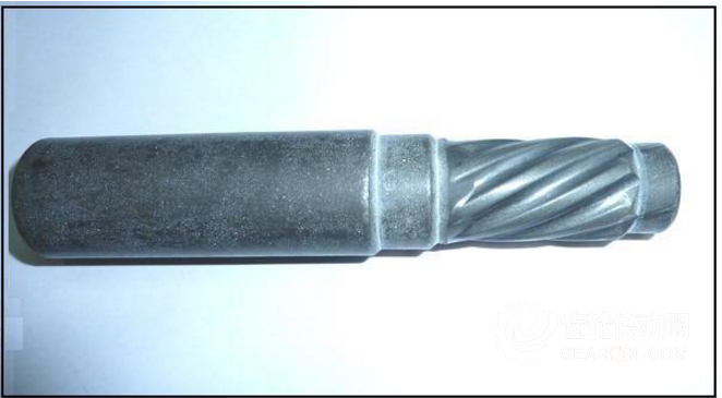 當代,齒輪的擠壓成形技術已從正齒輪成形發展到了斜齒園柱齒輪和螺旋花鍵軸的擠壓成形(圖12),齒形精度已接近和達到(DIN)7級,能充分滿足大部分汽車齒形零件的要求。冷擠壓成形的齒形零件應用已從汽車起動電機、汽車搖窗機等外圍部件發展到汽車轉向機、汽車變速箱等關鍵總成上。